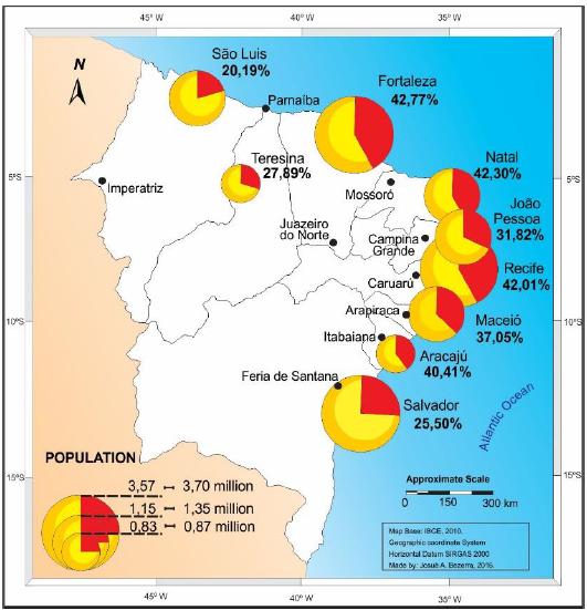 However, in recent decades, parallel to the phenomenon of metropolization in Brazil, some regional urban frameworks have been preserved, State capitals, which are often the largest urban centers, remained in charge of the national urban network (O'NELL, 2010). More importantly in this historical moment, however, is the emergence of a new economic, political and social logic, market by the modernization and decentralization of activities, but also by a growing poverty and inequality, which were once restricted to large metropolitan centers (SIMÕES; AMARAL, 2011; BEZERRA; LIMA, 2011).