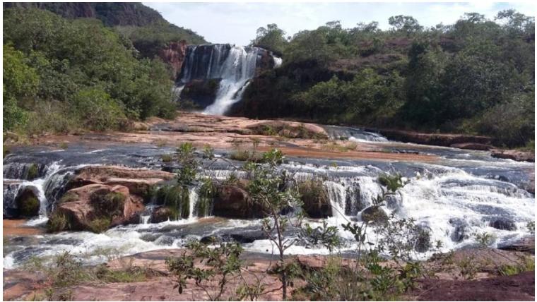 The waterfall Cachoeira do Cervo (Figure 4) is 64 km away from Paraúna. The local population uses the area for leisure but there is no infrastructure and the access is very difficult. The waterfall is formed by the Couro do Cervo River, it has approximately 12 meters high and 25 meters wide, and great aesthetic value. Local residents question the lack of infrastructure that makes it almost inaccessible for the population and tourists.