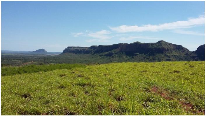 The geomorphological mapping of the Goiás State (GOIÁS, 2006) classifies the topography of the municipality of Paraúna as horizontal and sub-horizontal platforms. According to Goiás (2006), the rocks of the Paraná Basin were subjected to regional planation processes and the predominant units are the Regional Planation Surfaces associated with Tabular Reliefs. Casseti (2005) addresses an example of tabular relief on the northern edge of the Paraná Sedimentary Basin, and mentions the municipality of Paraúna featuring Carboniferous sedimentary sequences of the Aquidauna Formation that are under crystalline, pre-Cambrian structures (gneisses of the Goiás Complex and mica schists from the Araxá Group), covered or not by Jurassic-Cretaceous deposits of the São Bento Group or Cretaceous deposits of the Bauru Group. This geomorphology evolved in sedimentary rocks forming poorly to mildly dissected plateaus and large interfluves, resulting in a rather monotonous relief. The relief is also correlated with the basaltic flows of the Serra Geral Formation associated with the subhorizontal structures of the Paraná Basin.