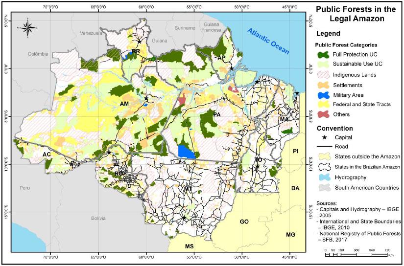 As a strategy for guaranteeing the sustainable use of biodiversity and maintenance of traditional peoples and communities, resulting from a historical process of struggle and claims, the Brazilian government was confronted with the need to organize the use and occupation of public forests throughout its extensive Amazon territory (Figure 1).