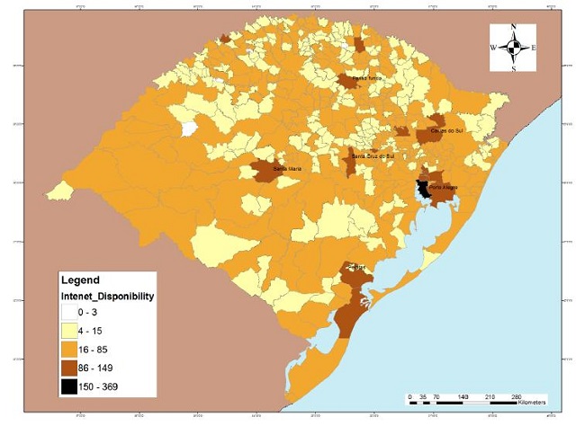 Thus, analyzing data on Internet offer, it appears that, being well distributed in Rio Grande do Sul, cannot be considered as a fundamental factor that allows or reinforces the concentration seen in Figure 1 and 2.