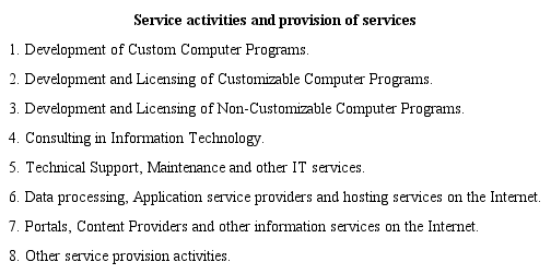 The classification adopted by the study to define IT follows that used by the National Classification of Economic Activities - CNAE, in which it is defined within the service sector involving activities indicated in Board 1: