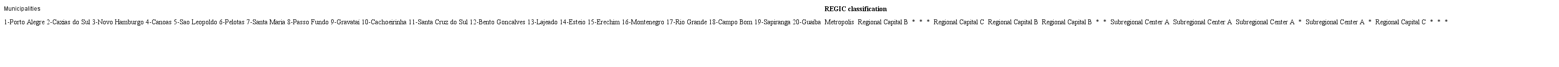 The remaining ten municipalities are part of the Porto Alegre Metropolitan Region; this indicates that IT companies are either in the MR, or they are in regional capitals B or C or in subregional centers. Data that allows a relationship between IT and places that have material infrastructure, not only for transport, but also for centers that concentrate differentiated resources within the state.
