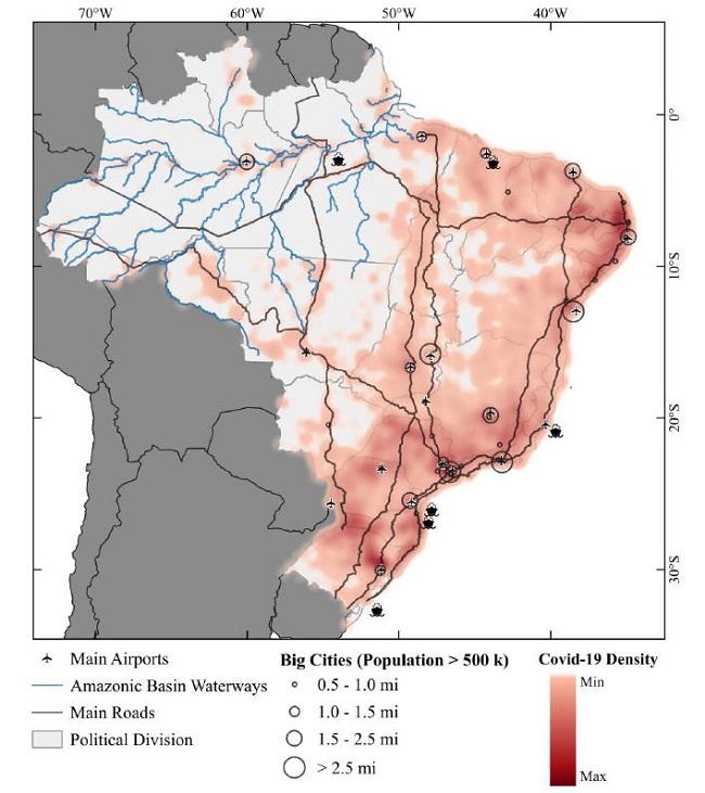The Brazilian territory, of continental dimensions and uneven territorial cuts, is marked by a favorable space for the spread of the coronavirus. The study concluded that the airway mode, represented by international and domestic airports that establish regional connections, was considered the main vector of entrance for COVID-19 in Brazil. In this perspective, the strata of the higher income population, associated with international travel, were considered the first carriers of the virus.