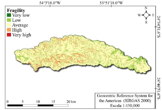 Watersheds constitute a balanced natural system where any change may compromise their functionality (CHRISTOFOLETTI, 1980; REGGIANI AND HASSANIZADEH, 2016). As an example, the removal of vegetation cover can affect temperature, soil structure, resistance to rainfall erosion, and water regime (TRICART, 1977). In this context, environmental fragility embodies the vulnerability of the environment that can suffer erosive processes, silting, and floods (SPÖRL, 2007).