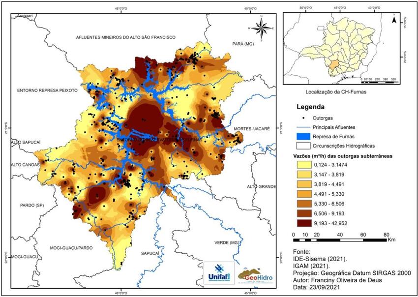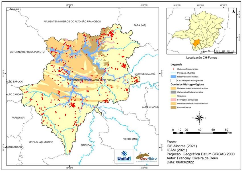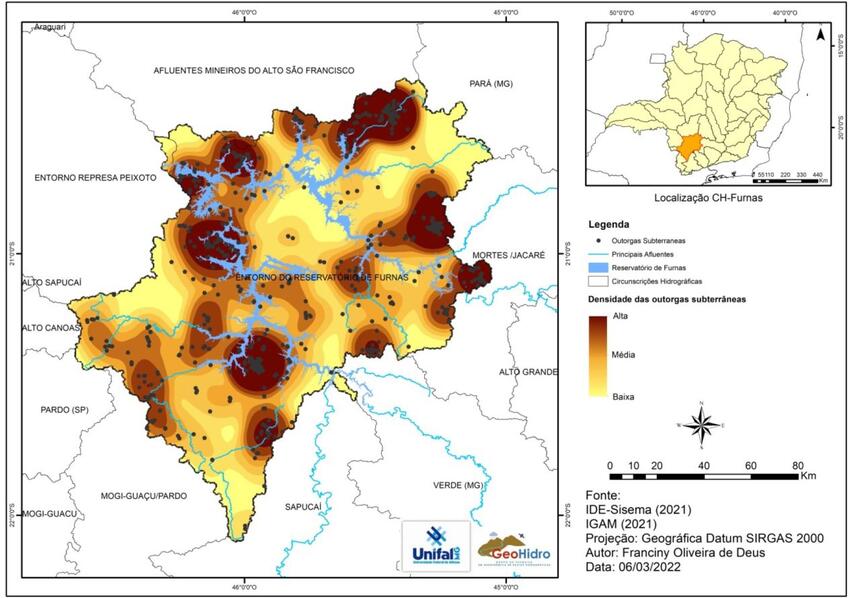 Em virtude da necessidade do diagnóstico espaço-temporal dos usos das águas subterrâneas por meio das outorgas concedidas pelos órgãos gestores, enquadra-se a Circunscrição Hidrográfica do Entorno do Reservatório de Furnas (CH Furnas), localizada na mesorregião Sul/Sudoeste do Estado de Minas Gerais, palco de conflitos pelo uso dos recursos hídricos e impactos em diversos circuitos econômicos (LEMOS JÚNIOR, 2010; GODOY, 2017).