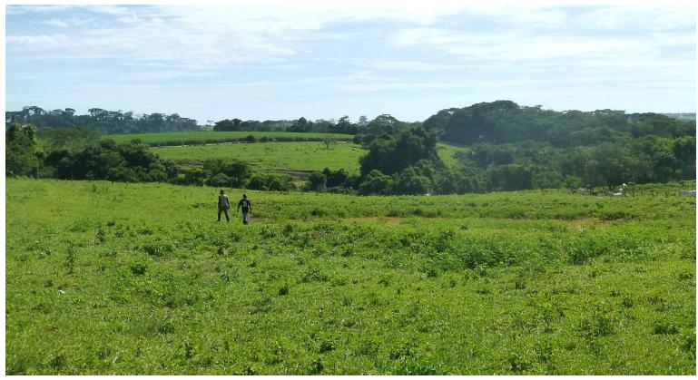 Este padrão de relevo ocorre na maior parte da BRP (55%), em encostas pouco dissecadas com curvatura convexa em gradiente suave. É observado principalmente nas bordas dos topos planos, caracterizando uma transição de um relevo plano para um relevo de colinas onduladas ou planícies fluviais. Neste padrão de relevo se observa tanto os processos de pedogênese quanto os processos de morfogênese, com predominância de erosão do tipo laminar sobre os Argissolos Vermelho-Amarelos profundos e bem drenados (Figura 6).
