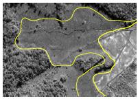 A área de estudo foi delimitada com auxílio do MDT supracitado. Foi calculada a declividade em graus a partir das variáveis direcionais de Horn, na ferramenta slope do ArcGIS 10.4.1 (HORN, 1981). Na sequência, obteve-se a média de declividade no raio de 5 m com a ferramenta focal statistics do ArcGIS. O recorte de análise foi definido considerando a área entre a cota de 30 metros (localidade em que o rio Jacareí adentra a planície aluvial) até o aterro da BR 277, limitado lateralmente pelos valores de declividade média de até 7 graus, valor definido a partir de observações de campo.