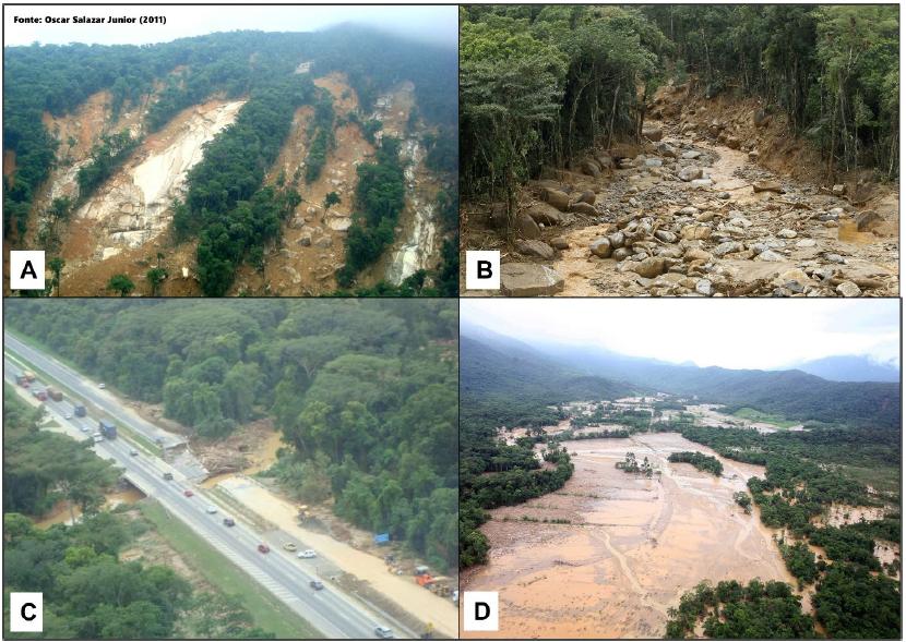 Na região litorânea sul e sudeste do Brasil encontra-se a Serra do Mar, um sistema de escarpas e montanhas com notável complexidade litológica e estrutural, que apresenta elevados valores de declividade e expressivas médias de precipitação por períodos prolongados, sobretudo nos meses de verão (VIEIRA; GRAMANI, 2015). Estas características conferem à paisagem elevada suscetibilidade à ocorrência de corridas de lama e detritos (KOBIYAMA et al., 2015; VIEIRA; GRAMANI, 2015; ROSS; FIERZ, 2018).