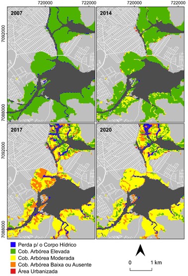 Palavras-chave: Mudanças climáticas, Cobertura e uso do solo, Sensoriamento remoto, Serviços ecossistêmicos, Zonas úmidas costeiras.