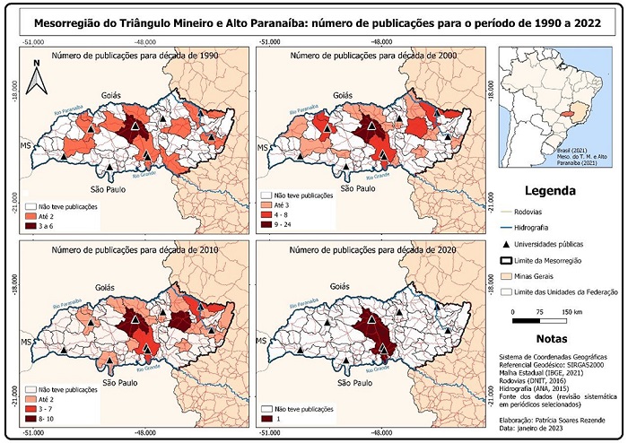 Ao se analisar os dados da produção bibliográfico do Triângulo Mineiro e Alto Paranaíba é perceptível a falta de uma produção espacialmente mais distribuída. Os artigos atendem a demandas localizadas e não avançam no entendimento da distribuição e diferenciação regional destes solos.