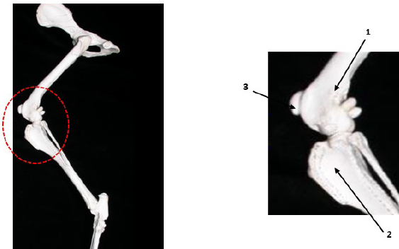 Con respecto a la morfología ósea, dos muestras presentaron una osificación en la unión tibio- fibular (sinostosis), lo cual no es normal ya que esta unión corresponde una articulación sinovial plana. Una de las explicaciones de ello, se puede deber a una edad avanzada por parte del animal.