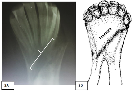 Se realizaron exámenes radiográficos para determinar el sitio exacto de fractura (Figura 2).