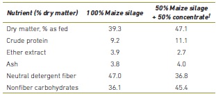 Diets were whole-plots whereas techniques to measure VFA clearance were sub-plots. Diets were composed of maize silage and a commercial concentrate based on ground corn and soybean meal. Cows were fed once daily at 8:00 h and feed intake was determined by the difference between the amounts of feed offered and refused.