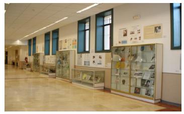 Por otra parte, las actividades museográficas del Museo se desarrollan en los aledaños del Museo, en la planta baja de la Facultad, en la que encuentra una serie de vitrinas y expositores ubicados en un espacio amplio donde el Museo adquiere un mayor protagonismo, y sus actividades una mayor proyección y difusión entre el alumnado de la Universidad (Figura 04). En palabras de su anterior director, Julio Ruiz Berrio, “el Museo y sus exposiciones no se quedan arrinconados en un almacén sino que salen al encuentro de su posible clientela”. (RUIZ BERRIO, 2011).