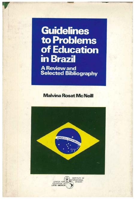 oferecer aos estudantes de assuntos brasileiros uma revisão sistemática de publicações sobre tendências contemporâneas e problemas da educação no Brasil. Mas, como os esforços do presente procuram corrigir uma situação herdada do passado, incluímos um breve esquema histórico da educação brasileira no intuito de auxiliar o leitor a entender as bases da situação atual e a avaliar a magnitude, dificuldade e urgência da presente problemática. (McNEILL, 1970, p. 1).