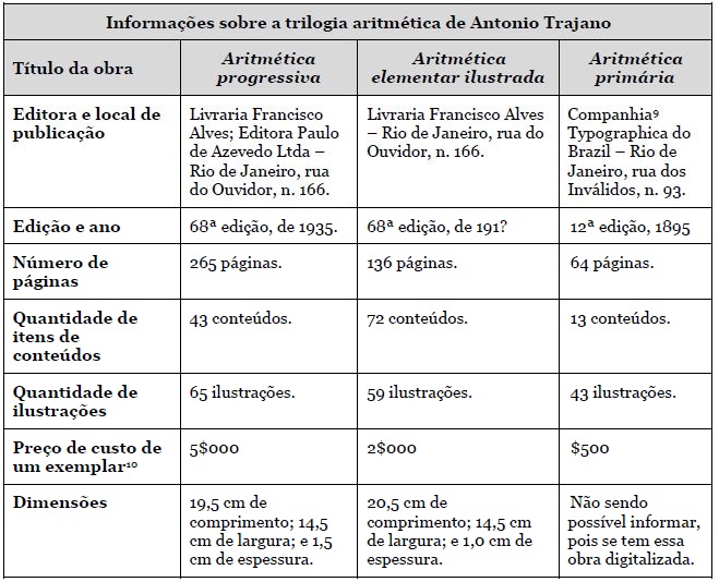 TRAJANO, Antonio Bandeira. Aritmética elementar ilustrada: ensino teórico e prático. 68. ed. Rio de Janeiro: Livraria Francisco Alves, 191?.