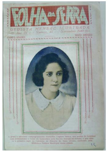 Dois meses depois, em novembro de 1940, a Revista Folha da Serra estampa em sua capa (Fig. 2) a vencedora do primeiro concurso de história de Mato Grosso, com a seguinte legenda:
