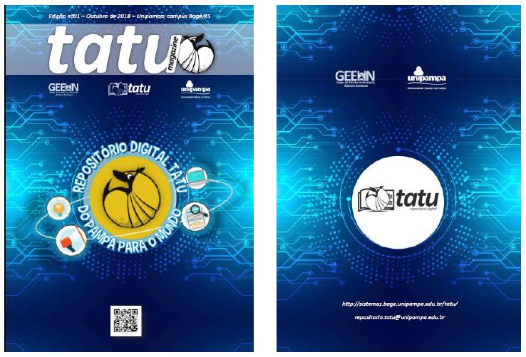 A expectativa é que novos números da Tatu Magazine possam ser publicados no decorrer do trabalho que vem sendo desenvolvido, com o objetivo, novamente, de normatizar os procedimentos e servir de subsídio de informações. A Tatu Magazine está disponível para acesso e download no site do Repositório Digital Tatu por meio do link: http://sistemas.bage.unipampa.edu.br/tatu/ index.php/2018/10/21/tatu-magazine.