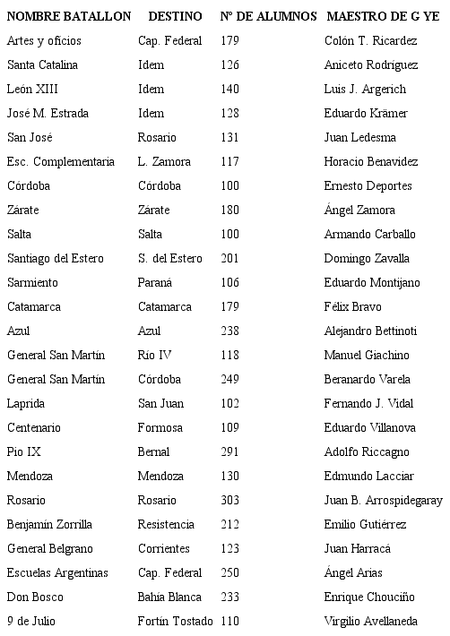 donde lo esperaba el profesor José Uttinger quien le dio la mala notica de que no se podía organizar el batallón escolar con motivo de las enfermedades reinantes entre los niños y que habían determinado hasta la clausura de las escuelas. A pesar de este gran contratiempo, el profesor Pini alcanzó a constituir el mismo día y definitivamente el batallón escolar. (PINI, 1910, p . 10)