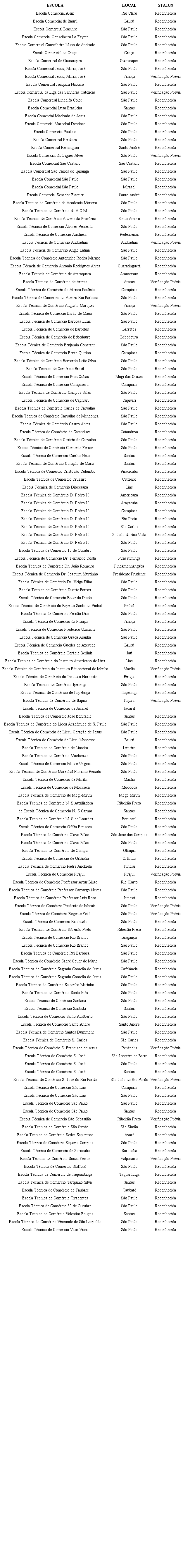 Na sequência, o documento apresenta uma lista3 das escolas técnicas e comerciais por estado brasileiro, com a cidade de localização e o status da instituição4. Essas informações são fundamentais para estudos que tomam o Ensino Comercial ou as Instituições Educativas como objeto de investigação. Dessa forma, o documento apresentado é uma fonte potente para estudos em História da Educação, História das Instituições Educativas, História da Contabilidade, História Econômica do Brasil, entre outras tantas possibilidades.