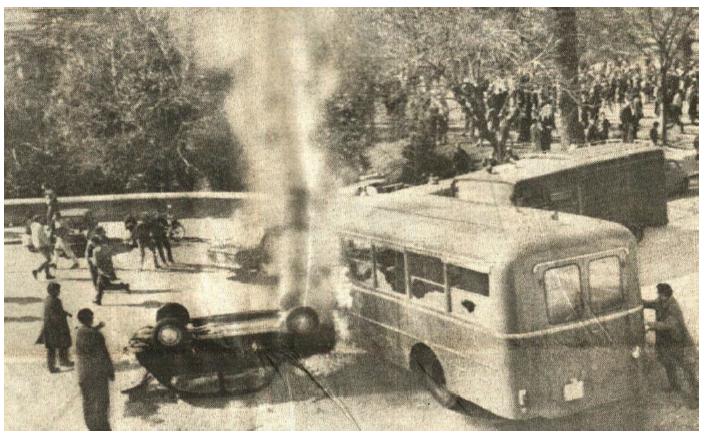 La radicalización del enfrentamiento entre los poderes dominantes dentro de las universidades y la voluntad de cambio de los estudiantes encontró su máxima conflagración en los archiconocidos episodios que condujeron a la “batalla de Valle Giulia”, considerada el momento álgido del movimiento en Italia (Fig. 01). Tras repetidas apelaciones al diálogo para presentar al rector D’Avack las propias quejas y reivindicaciones, después de haber recibido negativas y rechazos, aproximadamente unos 4000 estudiantes, que salieron de la céntrica Plaza de España, llegaron, la mañana del 1 de marzo de 1968, a la Facultad de Arquitectura de la Universidad de Roma, con el fin de encontrar un espacio para gestionar su asamblea. Una vez en la escalinata que mira hacia la mencionada facultad, se encontraron de frente a un numeroso tropel de fuerzas de policía, alineadas en actitud de guerra, con el fin de impedir la ocupación de los edificios. Los enfrentamientos duraron más de dos horas y media y la violencia ejercida por la policía fue de una gravedad inusual y nunca vista hasta aquel momento. Los estudiantes fueron arrestados, obligados a estar inmóviles, apaleados y llevados a comisaría, donde se les encerró en las salas de seguridad, hasta bien entrada la noche.