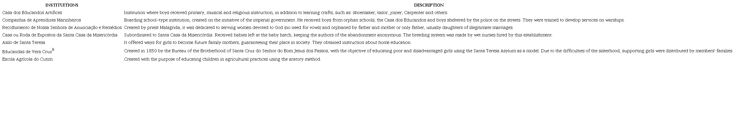 We conclude that despite its importance as explained in the reports of the provincial presidents and their directors, it has not prevented them from experiencing crises of all kinds throughout their life cycle, from the lack of adequate and comfortable housing to the lack of clothing and food. This situation does not differ from the other institutions for the shelter of poor children and orphans from Maranhão in the 19th century (Casa dos Educandos Artífices, Escola Agrícola do Cutim and Escola de Aprendizes Marinheiros), which, with divergent purposes and nature of training, have similarities in the forms of education, in the control and regulation of time and in the strategies of ordering and regulating bodies and souls.