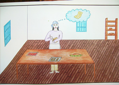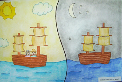 Pitta (2004) assegura que as imagens são organizadas por uma cultura ou indivíduo, ordenando-se sua visão de mundo tendo como suporte uma sensibilidade em interação com o meio ambiente. Ressalta, contudo, que esse ordenamento é correlacionado às características físicas do ser humano. As figuras a seguir, todas elas produzidas pela professora Mônica Gums Raasch, são parte do material de ensino pomerano em sala de aula e, igualmente, uma demonstração do projeto pedagógico em curso e da representação imagética do mundo pomerano.