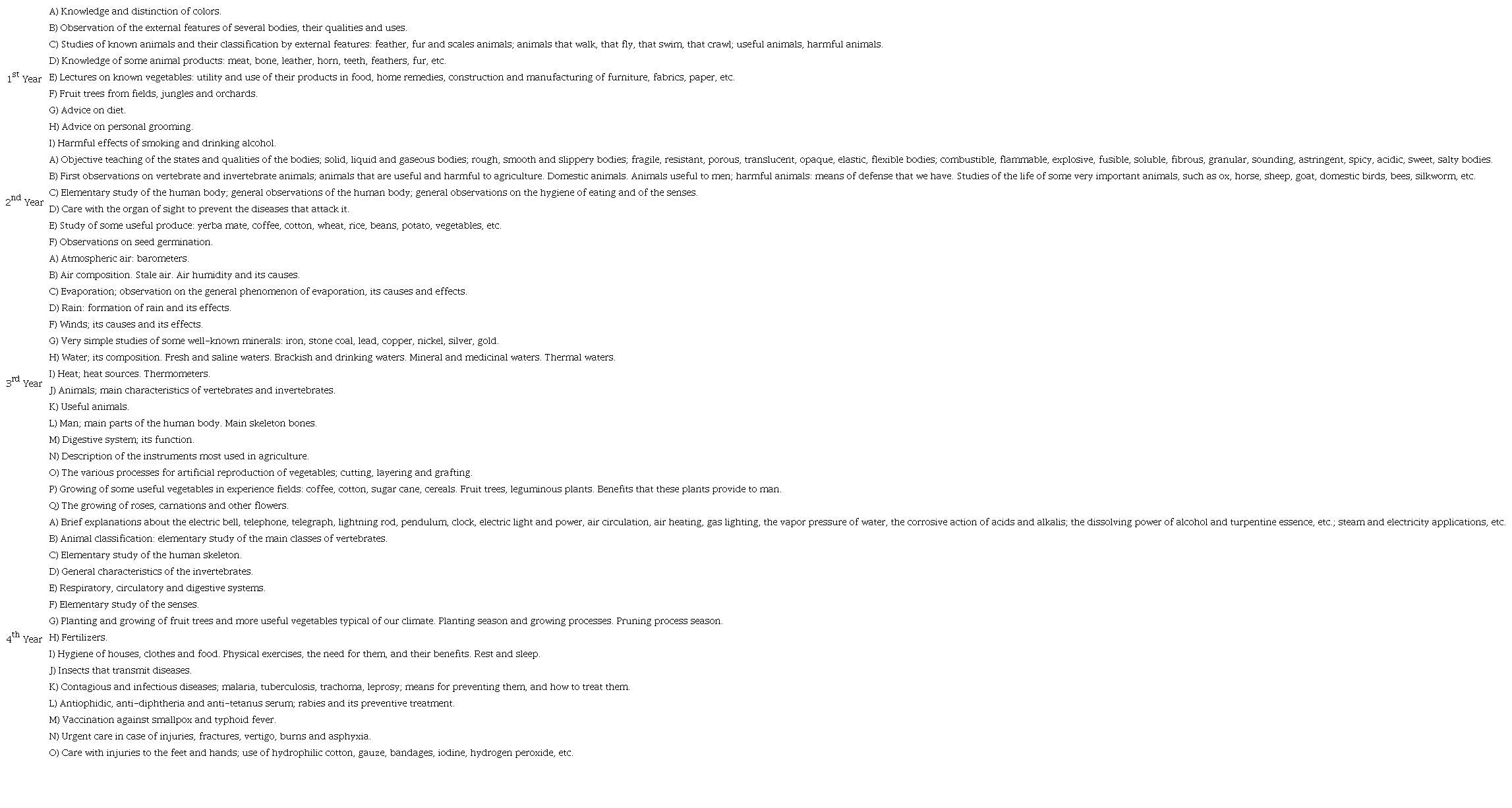 It was the pursuit of this understanding of education in the spirit of science that prevailed in the incorporation of the subject Physical and Natural Sciences in the programs prescribed both in 1907 and 19094, the first appearances of the subject in the official program for primary school. The 1907 regulation included a specific article on its ideal didactic treatment.