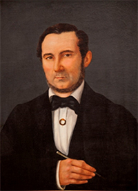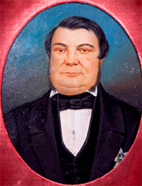 Vemos na fig. 3, o pai da artista, tenente-coronel Joaquim Cândido Corrêa (1815-1884) e na fig. 4, seu tio, Manoel Francisco Corrêa Júnior (1809-1857). Ambos fizeram parte das famílias de elite de Paranaguá no século XIX (LEÃO, 1926). Joaquim Cândido Corrêa foi provedor da Irmandade de Misericórdia e fez parte da comissão inspetora das escolas de primeiras letras (CARNEIRO JR., 2014). Na caneta que segura nas mãos o signo do trabalho letrado e não braçal, o terno com caraterística gravata de borboleta ainda traz uma joia logo abaixo, presa na camisa branca. As fig. 3 e 4 mostram que a moda entre os homens também trazia uma barba apenas nas laterais, formando um molde escuro no rosto.