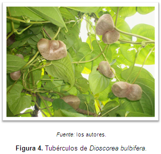 La principal característica de esta especie la constituye la presencia de bulbillos (tubérculos) a partir de las axilas de las hojas, hecho que marca el proceso de tuberización que se inicia apenas a los dos meses de brotación de la planta y que se mantiene durante el restante crecimiento de la planta. Estos pueden adquirir formas muy variadas, pero predomina la forma elíptica, similar a la papa (Solanum tuberosum L.) y que pueden alcanzar pesos entre 0,25 y un kilogramo (ver Figura 4).