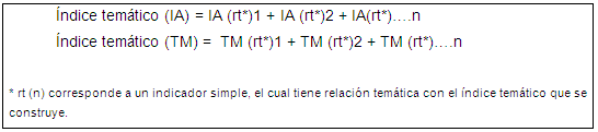Cada índice temático es la agrupación de las incidencias o de tasas de mortalidad, basados en la teoría de la historia natural de la enfermedad, de esta manera se construyeron las siguientes agrupaciones: intoxicaciones químicas, zoonosis, infección gastrointestinal, enfermedades transmitidas por vectores e infecciones respiratorias.