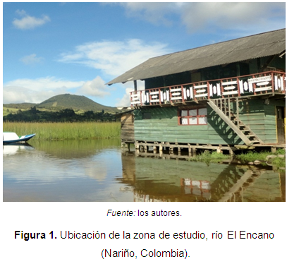 El objeto de estudio fue el río El Encano (Figura 1). La población se constituyó en la comunidad ribereña que abarca el tramo del río correspondiente a 5,596 km de longitud, desde la vereda El Socorro, corregimiento El Encano, municipio de Pasto, con coordenadas N1∞10,365' - W77∞08,496', hasta su desembocadura en la laguna de La Cocha, coordenadas N1∞08,304' - W77∞09,258' (Figura 2). Asimismo, se trabajó con la comunidad beneficiada, que se involucra en los procesos de manejo del agua y hace uso de la fuente. Metodológicamente se consideró importante realizar inicialmente una visita de reconocimiento, en donde se identificaron 80 familias que tienen una relación directa con el recurso; debido a que la población de interés era pequeña, se trabajó con la totalidad de la misma.