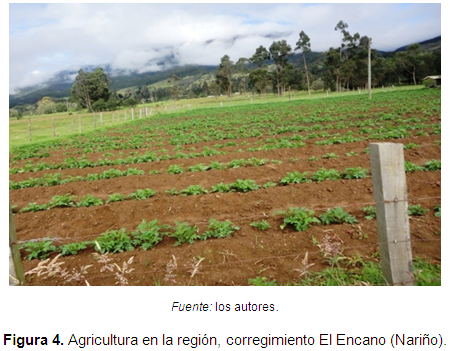 En lo que respecta a la agricultura, principal actividad económica para el sustento de las familias, el agua utilizada para los distintos procesos involucrados en la actividad agrícola se obtiene mayoritariamente en un 61% del acueducto; el 31% de los agricultores la toman directamente del río El Encano y el resto, representado en un 8%, utilizan el agua de pozos cercanos para los procesos agrícolas de sus parcelas, cuyos productos más cultivados en la región y aprovechados para la obtención de recursos económicos son la cebolla en un 40%, la papa en un 33% y la mora en un 19%, cultivos propios del clima y las características de la zona.