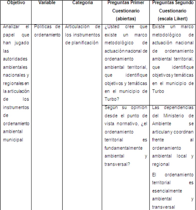En este sentido, en esta investigación metodológicamente lo que hizo fue hacer una comparación de los instrumentos normativos relacionados con los planes estratégicos, planes de ordenamiento territorial, lineamientos estratégicos de manejo, entre otros, para ver cómo afectan e inciden sobre el ordenamiento de los ecosistemas del municipio de Turbo, lo cual fue abordado con instrumentos de recolección de datos como entrevistas con expertos, sistemas de información geográfica y matrices de análisis.