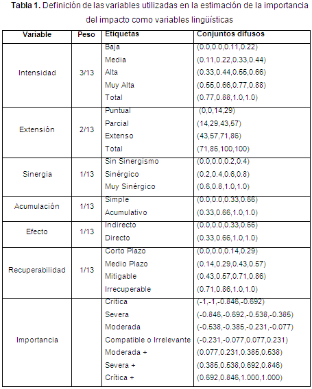 Las variables lingüísticas proporcionan una transición gradual de estados, tienen capacidad para expresar y trabajar con observaciones y medidas de incertidumbre, por lo que están más cercanas a la realidad. Por ello, es factible utilizar técnicas difusas en las evaluaciones de impacto ambiental.