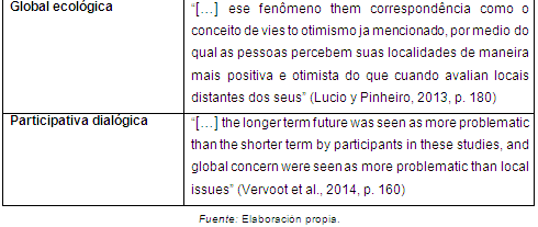 Sin embargo, desde la perspectiva de Gilford (2009), el pesimismo más que el fatalismo es diferente por su nivel espacial: local, nacional y global. En consecuencia, la hipermetropía no solo es un sesgo perceptual de las normas sociales, grupales y personales indicadas por su grado de utilidad y hedonismo, sino además es un sesgo de escenarios que el perceptor desconoce y por ende homogeniza para tener un control o certidumbre del contexto de disponibilidad hídrica.