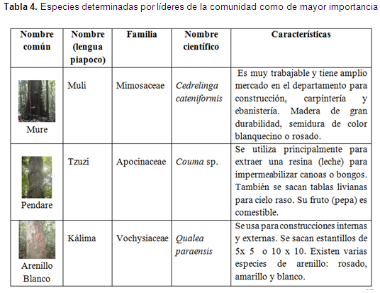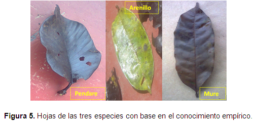Nombre común: Se recurrió al conocimiento empírico de la comunidad, la cual identificó las diferentes hojas de la figura 5. Posteriormente se usó un listado confiable de especies arbóreas de la comunidad Chigüiro-Chátare según Pedraza et al. (s.f.) para asignar los nombres científicos.