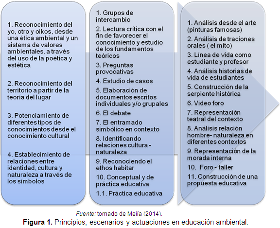 Los escenarios y actuaciones de esta propuesta van dirigidos a potenciar el conocimiento cultural a través de la educación ambiental para mejorar la relación del hombre con otros actores y escenarios. Es importante resaltar, que en esta propuesta los escenarios serán las circunstancias para desarrollar una acción u actuación. La relación entre los escenarios y las actuaciones se conciben como dinámicas, es decir, una manera de enseñar.