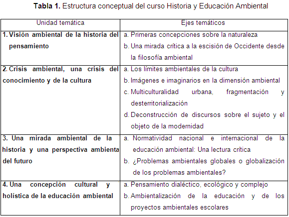 La tabla 1 presenta la estructura conceptual que orientó el curso, a partir de la reflexión y de actividades que transcendieron la teoría.