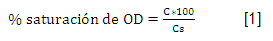 Cs: Concentración de saturación de O.D a la misma temperatura y presión que la medición