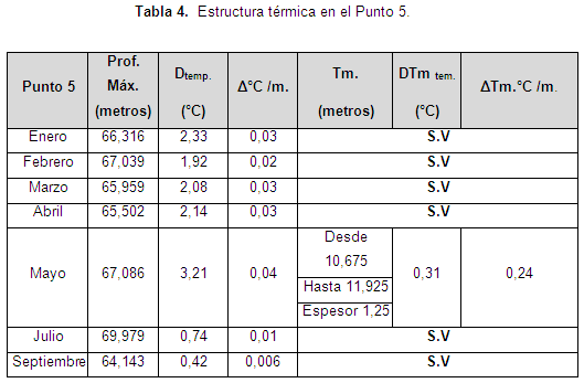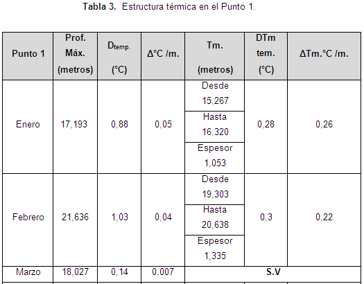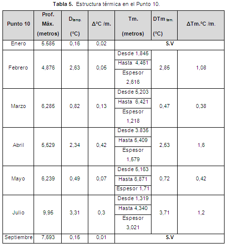 ESTRUCTURA TÉRMICA. Los resultados de la estructura térmica se presentan para los puntos 1, 5 y 10 y se pueden observar consolidados en las tablas 3 a5.