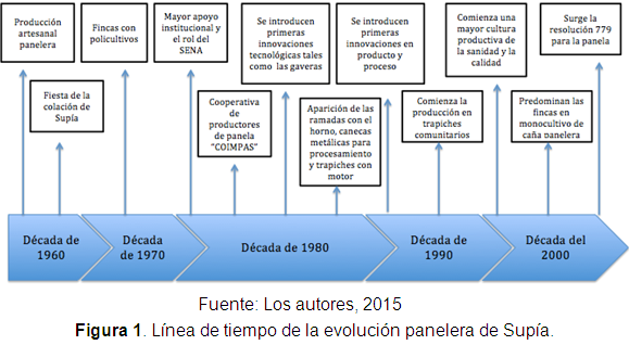 Los cambios técnicos generados en el subsector panelero de Supía, vienen originándose al menos en los últimos 50 años, no obstante el sistema de producción artesanal aún subsiste, a través de un modelo tradicional sin uso de abonos químicos, plaguicidas, formas de corte por desguíe, entre otros. Hacia los años 80, inicia un apoyo institucional donde se destaca el rol del SENA, que coadyuvó con la introducción de las primeras innovaciones tecnológicas, en particular en la presentación, trascendiendo de la panela de 500 gr comúnmente llamada "casco de buey", a la diversificación a través del surgimiento de moldes de 125 y 150 gr llamados "gaveras", lo cual fue mejorando el posicionamiento en diversos mercados.