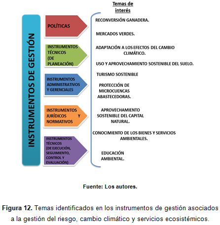 A continuación (figura 12), se exponen algunos temas de interés identificados en los instrumentos de gestión revisados durante el proceso y con los cuales se pueden articular estudios como el que se ha llevado a cabo en la microcuenca de la quebrada Dalí.