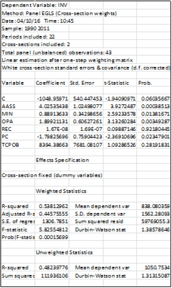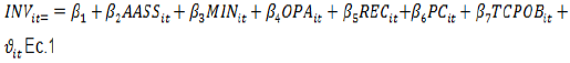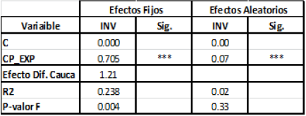 Donde INV es la inversión, CP_EXP es la expresión que recoge las variables sociales y económicas a través de componentes principales. El signo esperado es positivo, mostrando que los incrementos en la producción de los sectores económicos elevan la inversión ambiental, ya que se incrementaría la degradación del río. La variable τ_it, denota los términos aleatorios de error y de igual forma, se asumen que su comportamiento es igual a la modelación inicial. Las estimaciones resumidas se muestran a continuación: 22