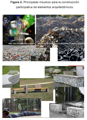 Sobre la base de lo antes planteado, se desarrolló la propuesta de investigación en la que se construyó un proyecto arquitectónico participativo con residuos sólidos (PET, plástico, escombros, llantas) y sinergia institucional.