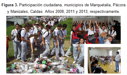 -Sinergia institucional. Por medio de la sinergia institucional (EMPOCALDAS, Alcaldía Municipal, Normal Superior Nuestra Señora de la Candelaria, SERVIMAR, CORPOCALDAS, ICBF y Gobernación de Caldas), se sumaron esfuerzos para contribuir a la construcción de procesos sociales y de infraestructura que dieron como fruto vías de acceso, un parque en botellas, mejoramiento de saneamiento básico e iluminación del sector; además, se atendieron casos puntuales de maltrato y prostitución, pero lo más grande y sin igual una comunidad viva, capaz de afrontar sus problemas, con voz y voto a través de la Junta de Acción comunal, tal vez no con todos sus problemas solucionados pero sí con herramientas fundamentales para trabajar por un futuro más alentador y con un fundamento muy importante: el de construir un desarrollo sostenible local.