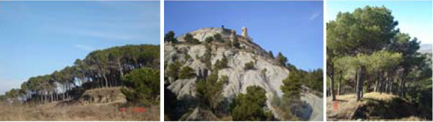 Áreas artificializadas que denotan una intervención antrópica. Por tratarse de áreas discontinuas y dispersas, pueden caracterizarse como unidades que establecen una presencia en forma de parches en la estructura paisajística. Están asociadas a un sotobosque de brezo blanco (Erica arbórea), marfull (Viburnum tinus), matorrales de bardissa (Rubus ulmifolius y otros) y pasturas secas de Mesobrimion, Plantigi aphyllanthetum, etc. (Ajuntament de Tona, 2007). Por demás, al ubicarse en áreas del piedemonte, son utilizadas para recreación y sirven como área de amortiguación, ya que estas plantaciones forestales de pinos (Pinus pinea y Pinus halapensis) y alzinares sirven también para evitar procesos erosivos en las pendientes más inclinadas.