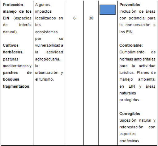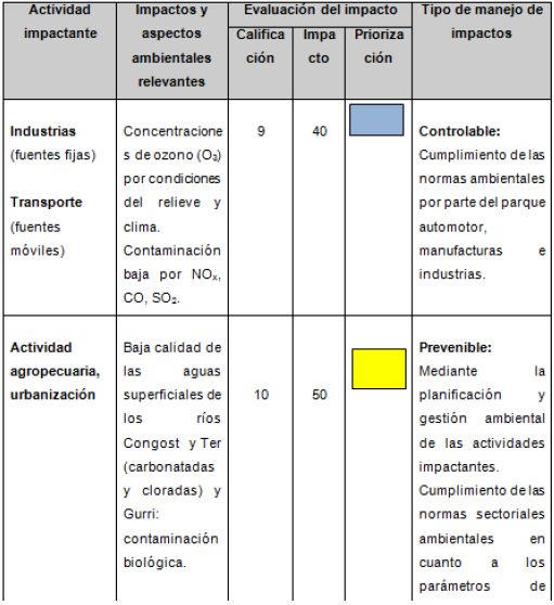 De manera complementaria, la descripción de los impactos ambientales se apoya en la metodología de análisis cualitativo de evaluación causa-efecto (calificación e integración) y los posibles tipos de manejo a seguir. Esta evaluación de impactos ambientales es necesaria para el desarrollo de cualquier tipo de intervención institucional en temas relacionados con la planificación del territorio, la gestión ambiental y la protección del paisaje.