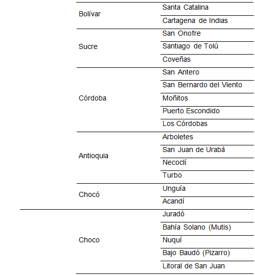 Esta falencia resulta preocupante en un país que tiene 12 departamentos con acceso al mar, que suman 31 municipios en la costa Caribe y 16 municipios en la zona costera Pacífica (tabla 1). En total, los 47 municipios en la franja mar-costa constituyen una franja de más de 3000 km del territorio nacional, la cual se encuentra bajo vulnerabilidades particulares que requieren ser identificadas y gestionadas bajo esquemas de Gestión Costera Integrada - GCI (Arenas, 2012; Botero, 2013). Esto ha hecho evidente la necesidad de implementar opciones alternativas a la gestión tradicional del riesgo, que tengan en cuenta la especificidad del territorio costero y su impacto sobre la gobernabilidad a la escala local. Adicionalmente, el enfoque tradicional puede ser un factor a tener en cuenta para encontrar las razones por las cuales entre las más de dos millones de personas afectadas por la ola invernal, el 70% se encontraban en la Costa Caribe (DNP, 2010).